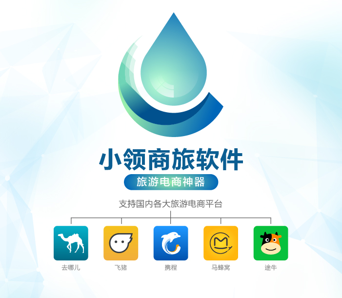 小領商旅軟件,旅游電商神器,國內(nèi)各大旅游電商平臺(去哪兒,攜程,途牛,飛豬,螞蜂窩...)均可支持:機票集成,價格更新,排名分析,價格對比,做電商就是這么容易!。